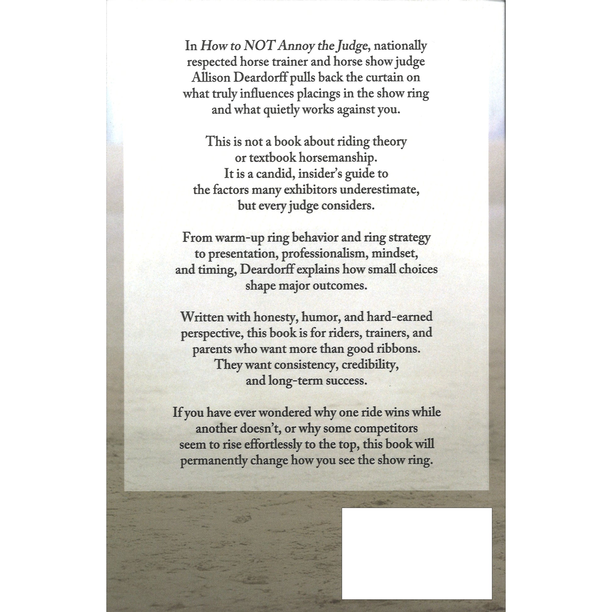 By Allison Deardorff. If you have ever walked out of a class replaying every moment and wondering what the judge was actually thinking, this book was written for you. Nationally respected trainer and judge Allison Deardorff brings a rare combination of honesty, humor, and real insider knowledge to topics that most people only whisper about, covering everything from warm-up ring behavior and ring strategy to presentation, professionalism, and the mindset that separates consistent winners from the rest. This is not a theory-heavy horsemanship manual; it is a candid, practical guide to the small choices that quietly shape major outcomes in the show ring. It would make a genuinely meaningful gift for any rider, trainer, or Saddlebred parent who is serious about long-term success and ready to hear something true. Pick up a copy and prepare to see the show ring in a whole new way. Hard or soft cover. 306 pages.