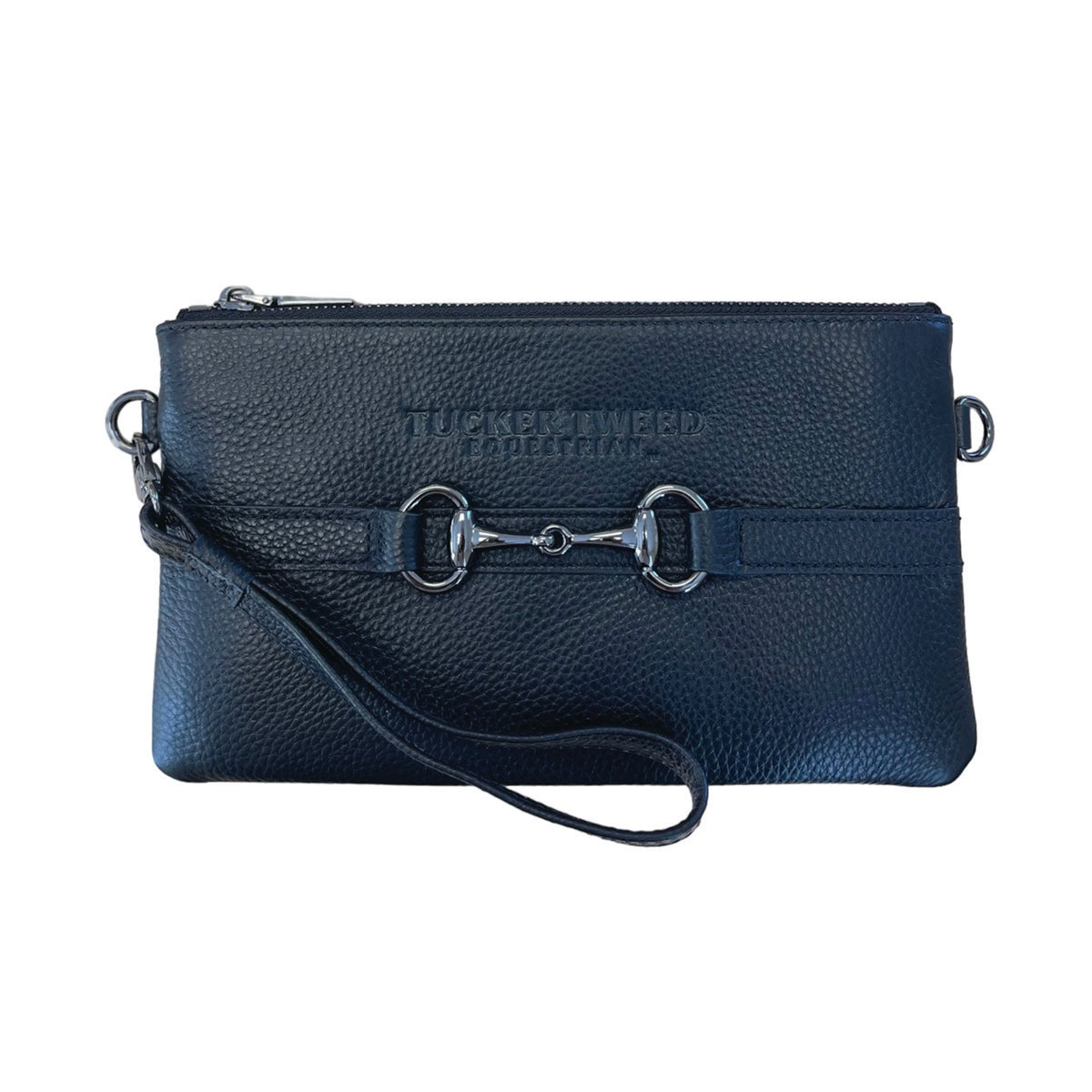 Where equestrian elegance meets everyday convenience! The Tucker Tweed Equestrian Wellington Wristlet is crafted from luxurious pebble-grain leather and comes in a variety of chic colors with contrast accents and a stunning snaffle bit detail. Designed with versatility in mind, this wristlet transforms effortlessly into a clutch or crossbody with the included detachable straps.